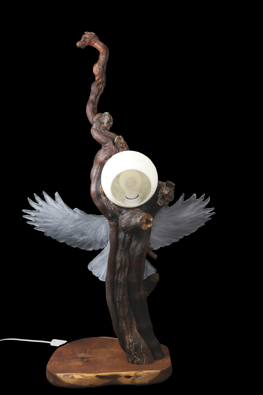 Lampe d'ambiance, Pied de Vigne et Résine "Noctua in Lumine Lunari""