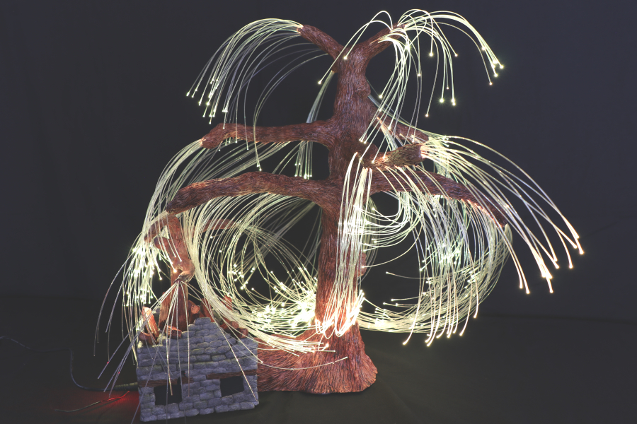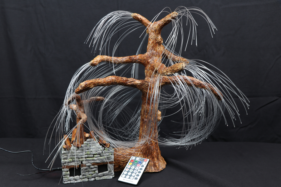 Cette Sculpture lumineuse en Argile est originale et unique, la représentation d'une nature qui reprend ses droits. Le tout est illuminé à l'aide de fibres optiques télécommandées, avec différentes options