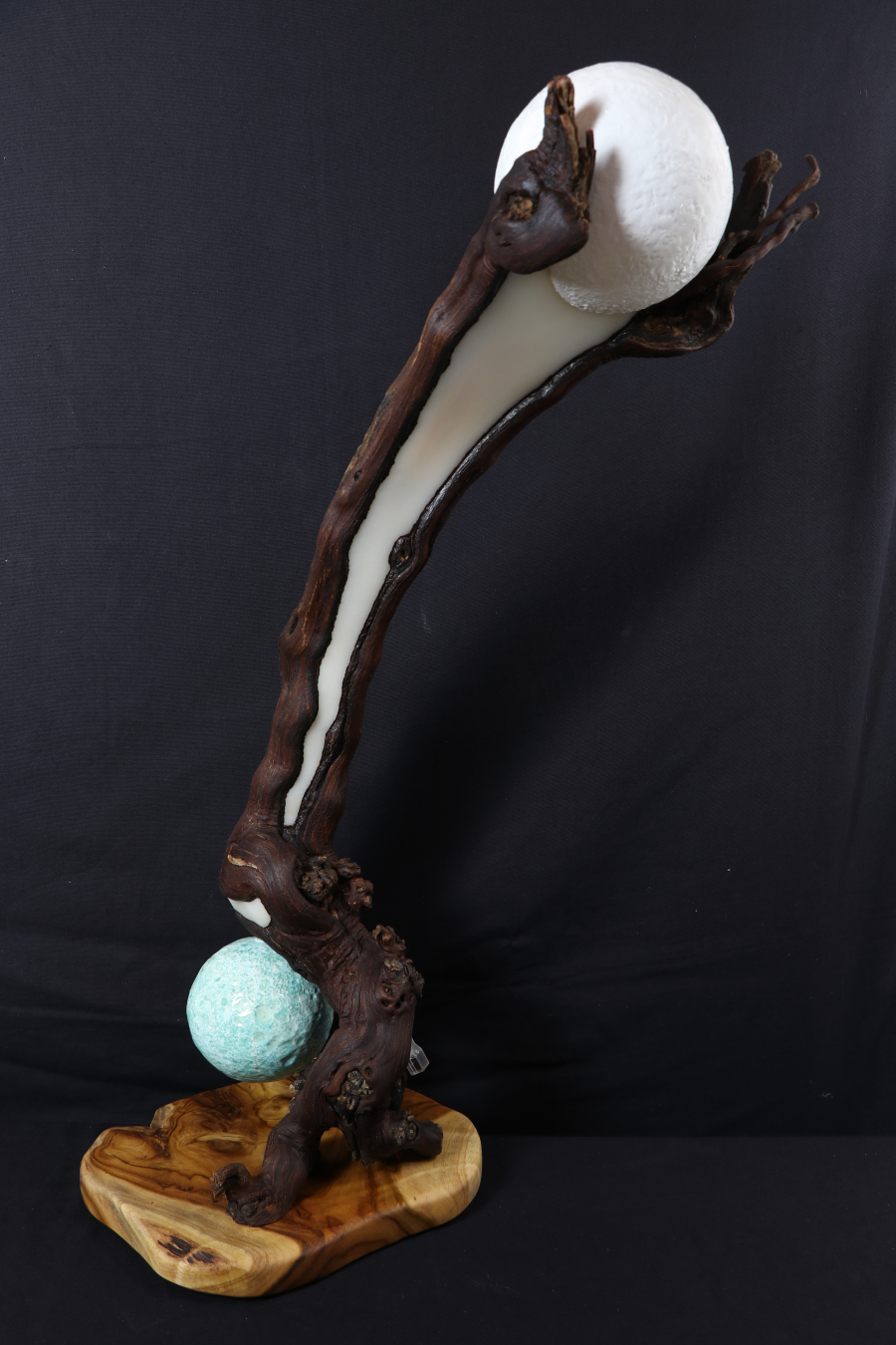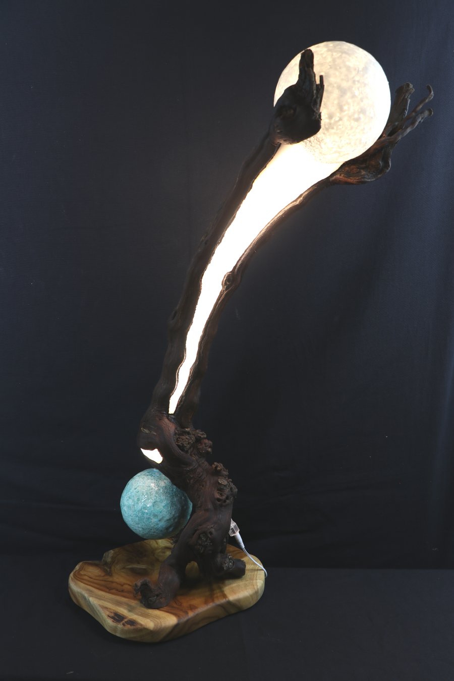 Lampe d'ambiance, Pied de Vigne et Résine "Planetae Solem"