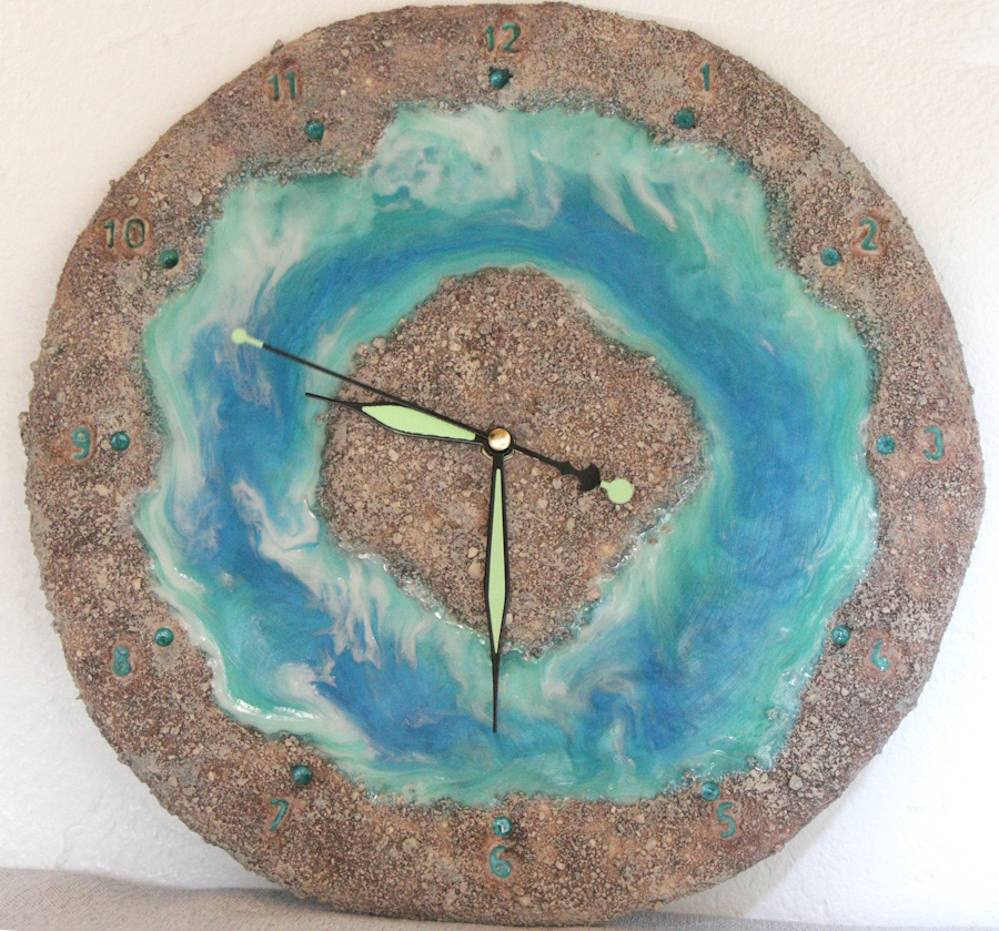 Sculpture: Résine Polyuréthane et Résine Epoxy avec Pigments, horloge silencieuse
